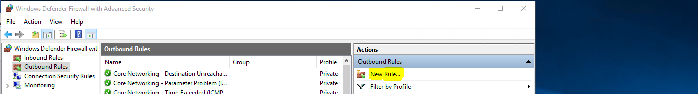 - سپس به بخش Outbound Rules رفته و بر روی New Rule کلیک کنید.