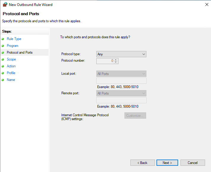 ۶. در بخش Protocol and Ports نیازی به اعمال تغییرات نیست و بر روی Next کلیک کنید.