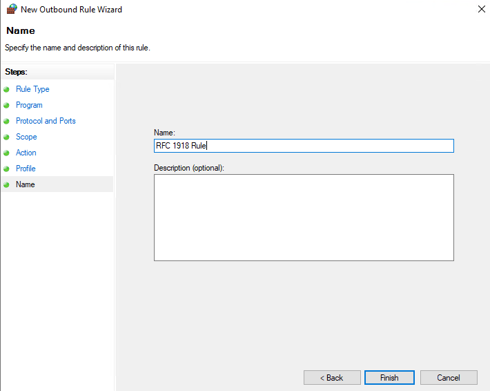 10. در این مرحله باید یک نام برای Rule خود نوشته و بر روی Finish کلیک کنید تا تنظیمات شما اعمال شود.